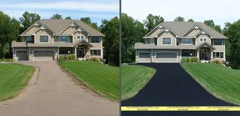 All of our sealer is brush applied. We know this application process will give you the most protection per application. We will first perform our routine "prep" service, and then we will apply the sealer. We will cover the driveway with our custom mix sealer, work the sealer into the driveway by brushing it in several directions, and finally make the last brush strokes in a straight up and down manner. Our sealer dries to a beautiful black finish. (Matte finish not shiny)